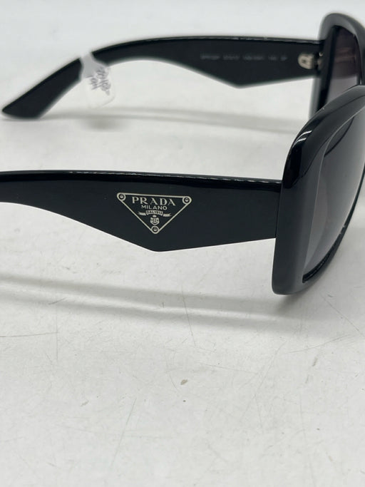 PradaSPR 32P 57017; AS IS: Scratches Brand = Prada Condition = AS IS Color = Black & Silver Fabric = Acetate Material = Polarized Pattern = G...