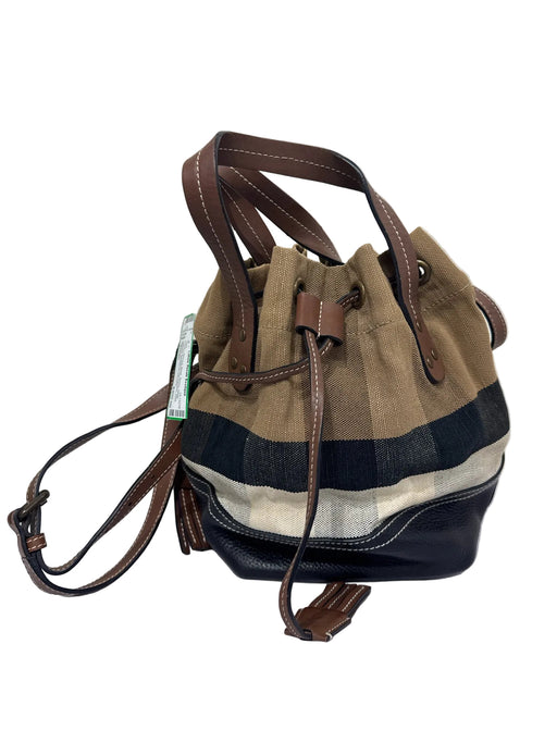 BurberryHeston *Stains on Handles Brand = Burberry Size = Small Condition = AS IS - Stained Color = Black, Brown, White Fabric = Canvas & Leather...
