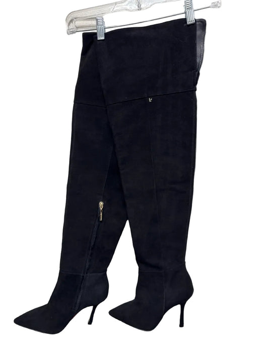 View full detailsLarroude Shoe Size 6.5 Black Suede Pointed Toe Paneled Thigh High Mid Heel Boots
