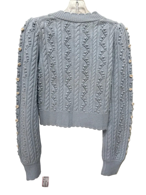 View full detailsNeedle & Thread Size Small Light Blue & Cream Merino Wool Cable Knit Cardigan