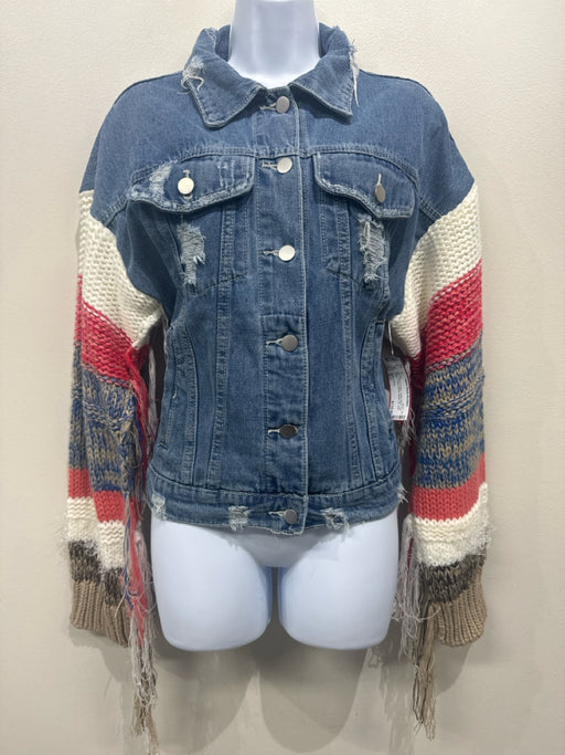 Wren + Glory Size S Blue, Red & Cream Cotton Blend Knit Sleeve Button Up Jacket