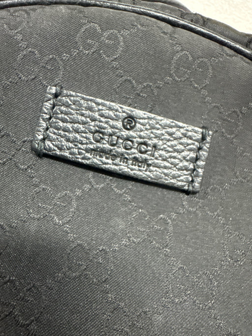 GucciAS IS - Small Tear on Base of Left Strap, Pilling on Straps Brand = Gucci Condition = AS IS Color = Black Fabric = Nylon & Leather Materi...