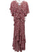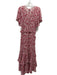 Misa Size XS Red & White Polyester ruffles V Neck Cap Sleeve Maxi Dress