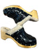 Ugg Shoe Size 11 Black & Tan Patent Leather Shearling Lined Wood Fringe Clogs