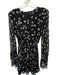 The Kooples Size 1/S Black & Yellow Silicone Long Balloon Sleeve Daisies Dress