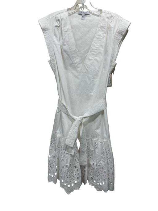 Derek Lam 10 Crosby Size 8 White Cotton Cap Sleeve Solid Eyelet Bottom Dress