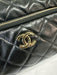 Chanel Black Leather Quilted Shinny Pockets Gold Hardware Bag