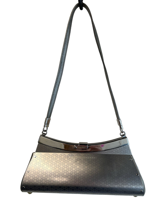 View full detailsWendy Stevens Silver Metal Leather Strap Hinged Bag