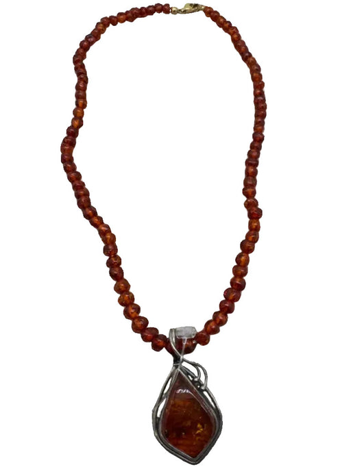 Labels Resale BoutiqueColor = Orange & Silver Fabric = Amber Material = 925 Silver Pattern = Tear Drop Attribute = Pendant Style = Lobster Clasp Location = ...
