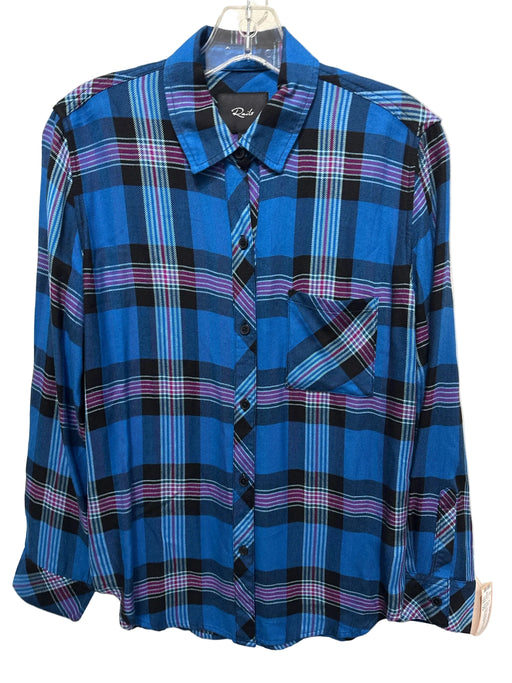 View full detailsRails Size XS Blue, black, & white Rayon Plaid Button Up Chest Pocket Top