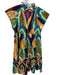 Crosby Size Est S Green & Blue Cotton Cap Sleeve Abstract Ruffle collar Dress