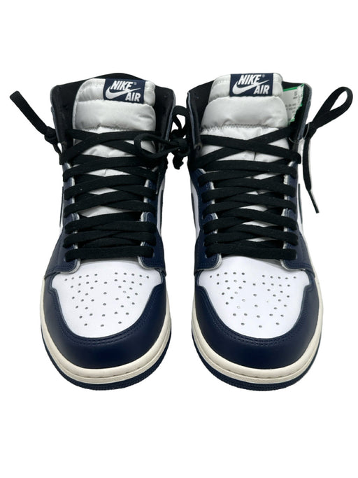 JordanBrand = Jordan Shoe Size = 10 Color = Navy & White Fabric = Leather Pattern = Two Tone Style = Sneaker Included = High Top Location =...