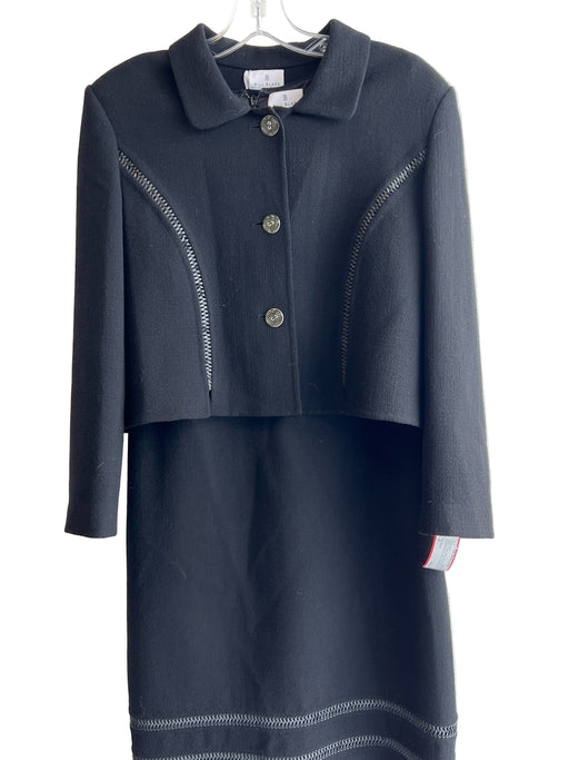 Bill Blass Size 8 Black Missing Fabric Tag Braided leather solid color Dress Set