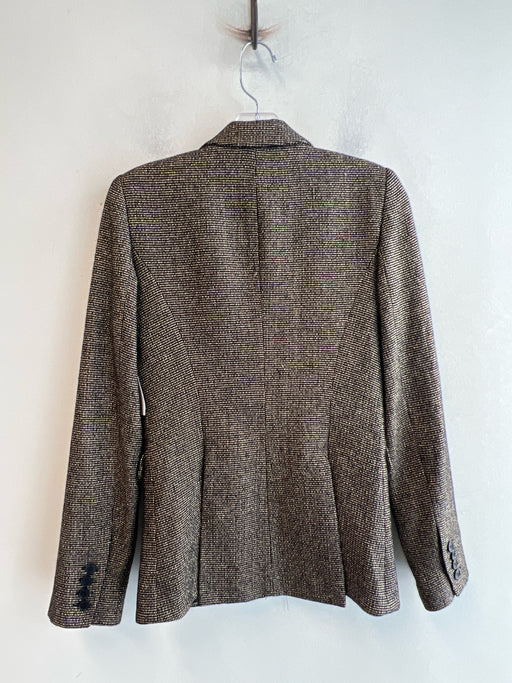 View full detailsSmythe Size 4 Gold & Black Wool Blend Metallic Thread Checkered 1 Button Blazer