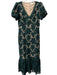Just Me Size Small Green & Tan Polyester Lined Overlay Back Zip V Neck Dress