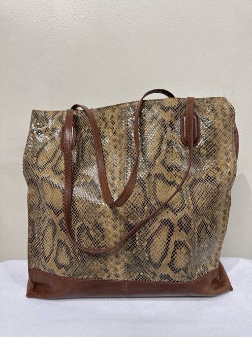 View full detailsHobo Brown & Beige Embossed Leather Gold Tone Hardware Snap Top Snake Print Bag