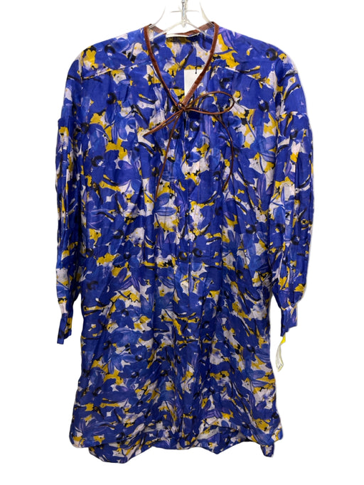 View full detailsDorothee Schumacher Size M Blue, Yellow, White Faux Leather Trim Floral Coverup