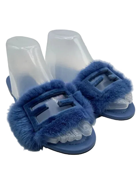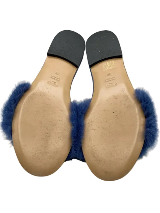 View full detailsFendi Shoe Size 38 Blue Suede Mink Fur Accent FF Motif Slide Shoes