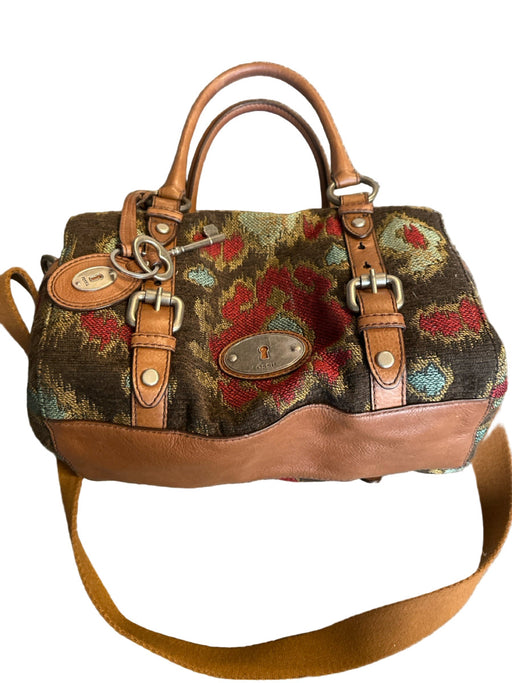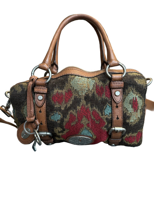 Fossil Brown & Red Canvas & Leather Ikat Top Handles Long Strap Incl. Bag