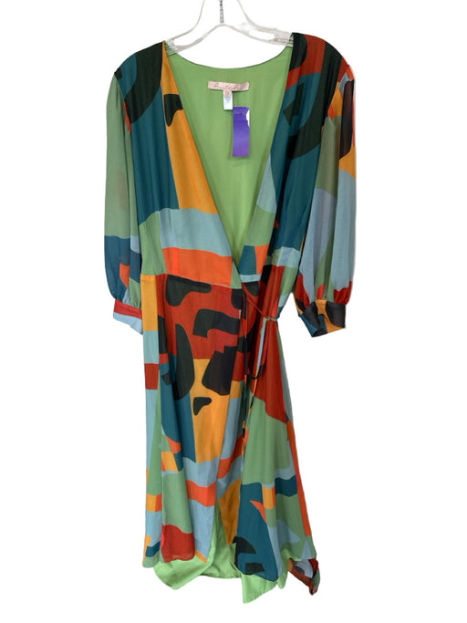 View full detailsHutch Size 1X Teal & Orange Polyester Long Balloon Sleeve Geometric Wrap Dress