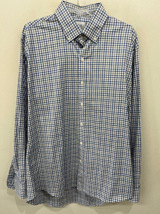 Brand = Ledbury Size = 16 Color = Navy & Light Blue Fabric = Cotton Pattern = Plaid Style = Button up Location = Buckhead Model = Men...
