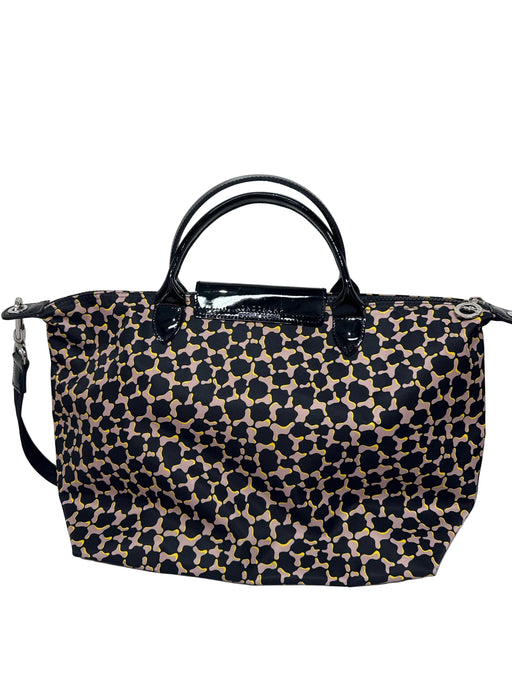 View full detailsLongchamp Black, Pink, Yellow Nylon Patent Leather Trim Abstract Top Handle Bag