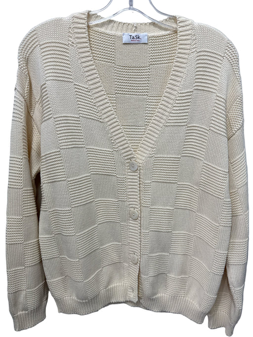 Ta.SK Size 42 Cream Cashmere Button Down Checkered Knit Long Sleeve Cardigan