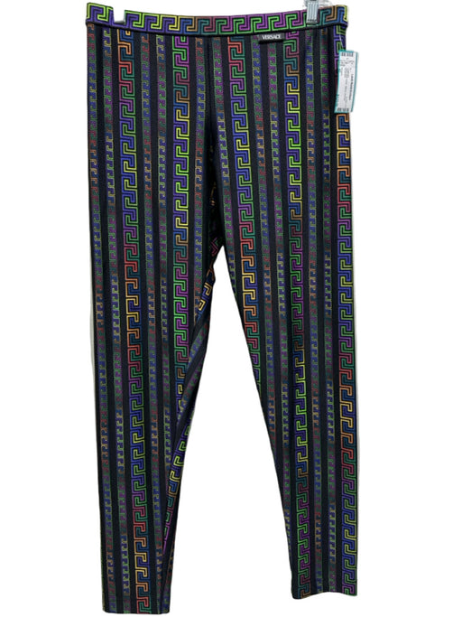 View full detailsVersace Size 42 Black Multi Nylon Striped Grecian Leggings