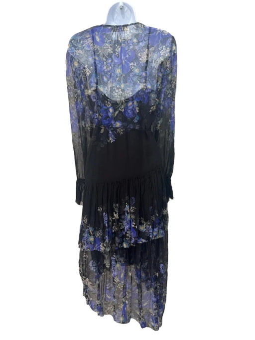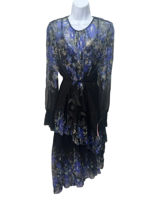 View full detailsZimmermann Size 3 Black, Blue, Multi Silk Long Sleeve Floral Print Tiered Dress