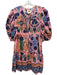 Farm Rio Size L Pink, Blue, Green Cotton Short Puff Sleeve Aquatic Dress
