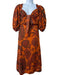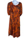 Johanna Ortiz Size 10 Orange & Brown Cotton Floral Tie Front Maxi Dress