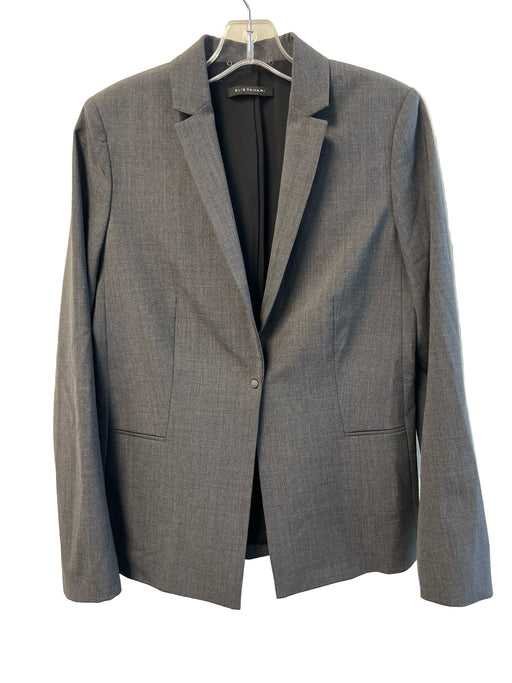 View full detailsElie Tahari Size 8 Gray Lana Long Sleeve Button Front Shoulder Pads Jacket