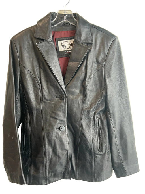 Wilsons LeatherBrand = Wilsons Leather Size = M Color = Black Fabric = Leather Material = Blazer Pattern = Interior pocket Attribute = Lapel Style = 2 ...