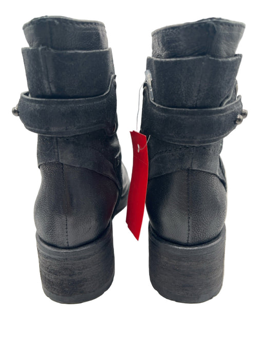 View full detailsVera Wang Shoe Size 37 Black Leather Stud Detail Stirrup Stacked Heel Moto Boots