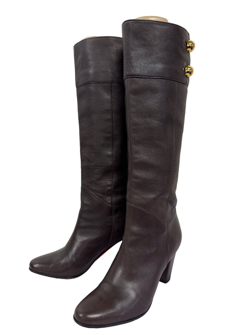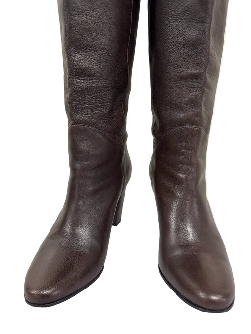 View full detailsKate Spade Shoe Size 6.5 Dark Brown Leather Round Toe Block Heel knee high Boots