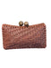 Serpui Marie Dark Peach Wicker Clutch Woven Mosaic closure hardshell Bag