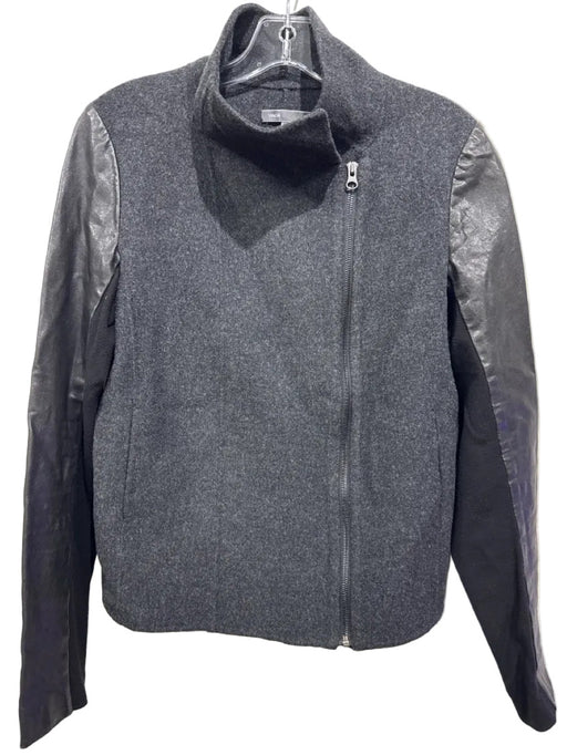 VinceBrand = Vince Size = M Color = Gray & Black Fabric = Wool Blend Material = Leather trim Pattern = Zip Up Attribute = Fabric Block Sty...