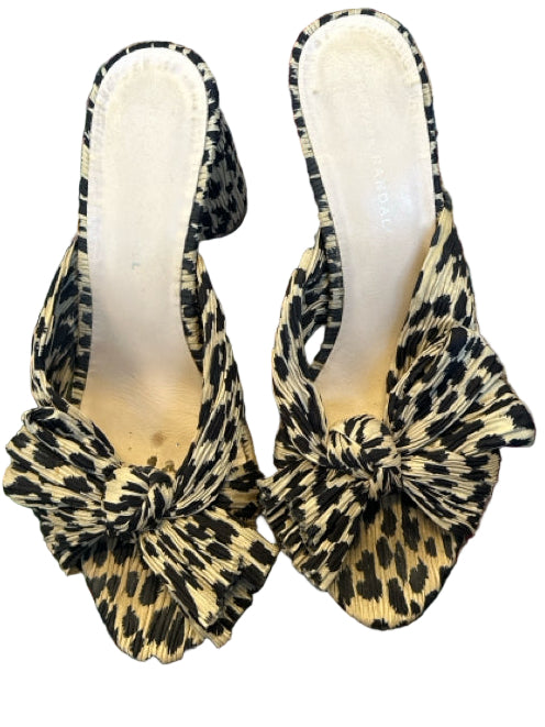 View full detailsLoeffler Randall Shoe Size 8.5 Tan & Navy Canvas Bow Animal Print Mules