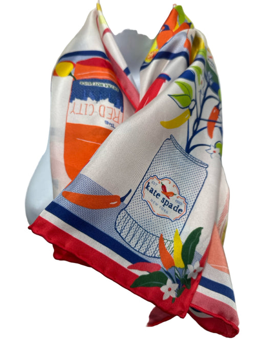 Kate SpadeHot Sauce Print - 34" square Brand = Kate Spade Color = Orange, Pink, Blue Fabric = Silk Material = Rolled Hem Attribute = Square Location =...