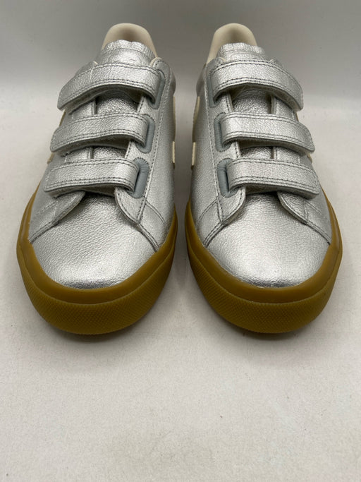 View full detailsVeja Shoe Size 8 silver, cream, tan Leather Upper Velcro Straps Low Top Sneakers