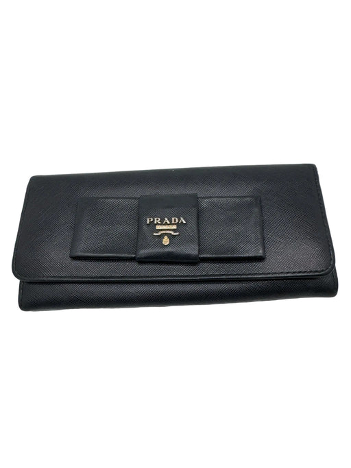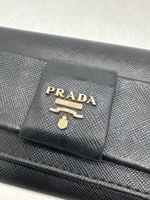 View full detailsPrada Black Leather Button Closure Coated Bow Detail Wallets