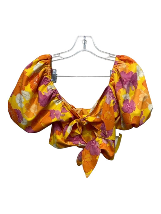 Agua Bendita Size M/S Yellow, Orange, Pink Polyester Short Puff Sleeve Skirt Set