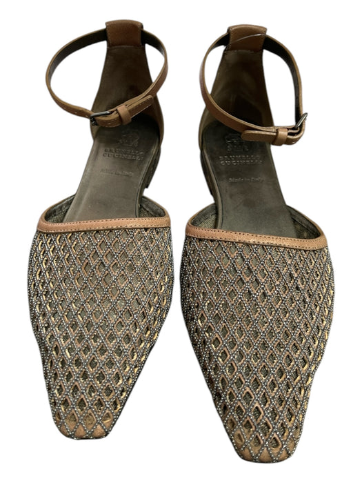 Brunello Cucinelli Shoe Size 35 Brown Leather Beaded Ankle Strap Flats Shoes