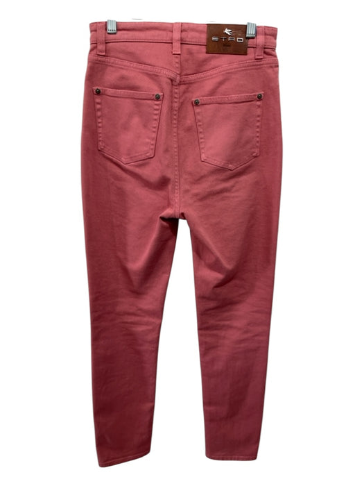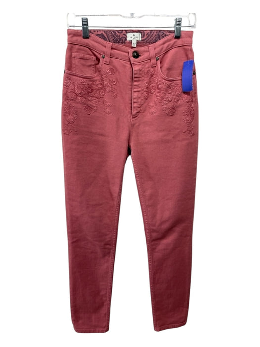 Etro Size 27 Pink Cotton Blend High Rise Floral Embroidery Slim Tapered Jeans