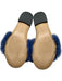 Fendi Shoe Size 38 Blue Suede Mink Fur Accent FF Motif Slide Shoes