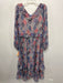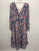 Greylin Size M Blue & Red Polyester Botanical Print Ruffle Back Zip Dress
