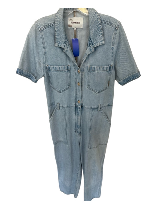 Nanushka Size M Light Wash Cotton Blend Short Sleeve Buttons Denim Jumper