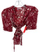 Reformation Size S Red & White Viscose Short Sleeve Floral Print Wrap Peplum Top
