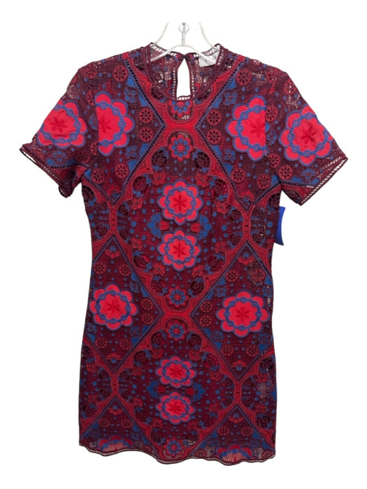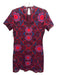 Sandro Size 1 Burgundy, Red & Blue Polyester Short Sleeve Fabric Block Dress